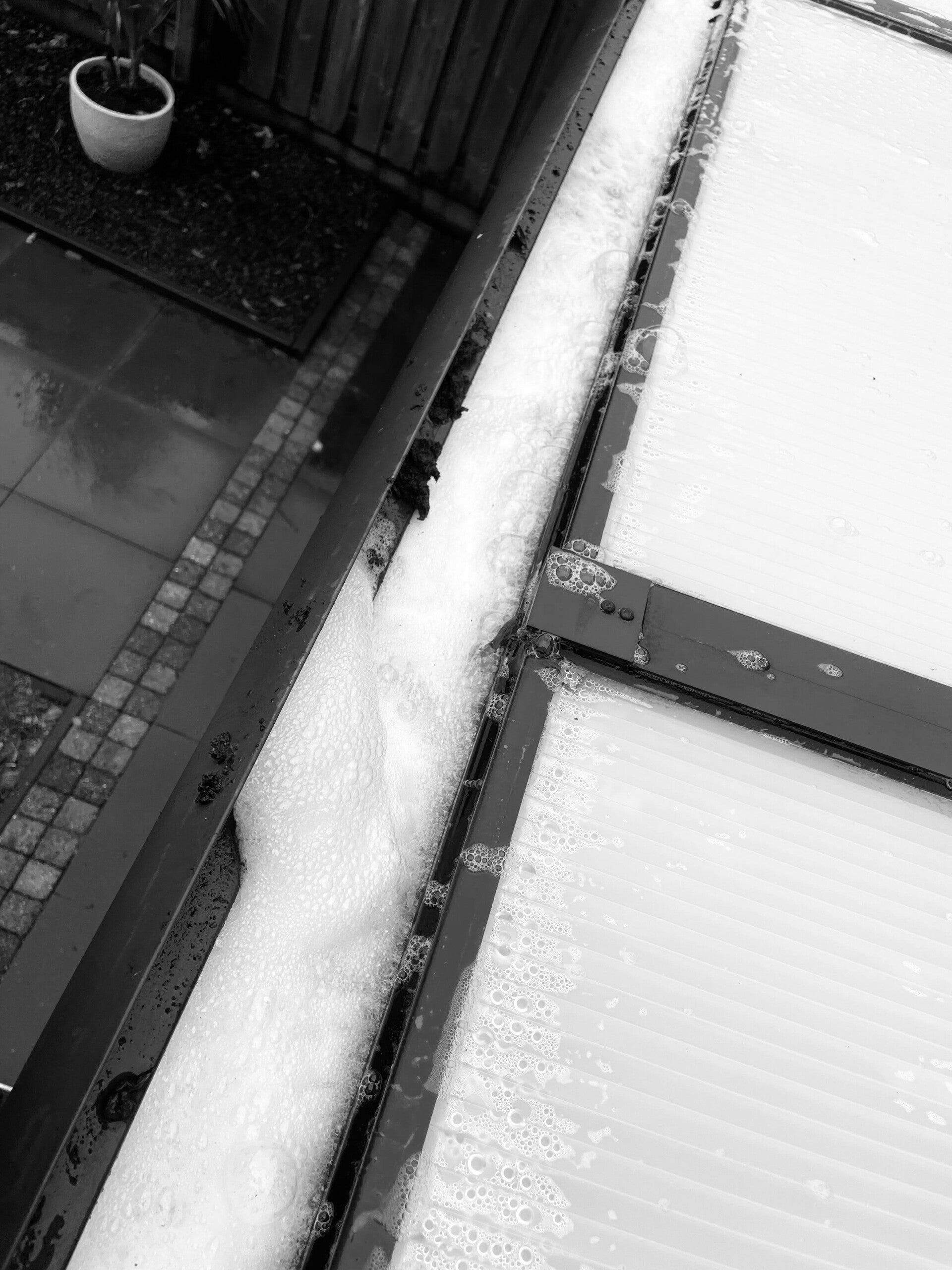Een concreet voorbeeld van deze strijd met hoogtes was mijn overkapping. Gedurende de hele herfstperiode ergerde ik me aan de groene aanslag die zich langzaam maar zeker opbouwde op het dak van mijn overkapping. Zelfs wanneer ik ontspannen op de bank zat en naar buiten keek, werd mijn aandacht getrokken door die vieze derrie. Uitbesteden werkt niet echt. Op een gegeven moment kon ik niet langer denken: "Laat maar zitten." Hoe lang kon ik het eigenlijk laten zitten? Het ziet er toch niet uit! Daar ga ik dan, ik neem zelf het risico om op een ladder te staan.